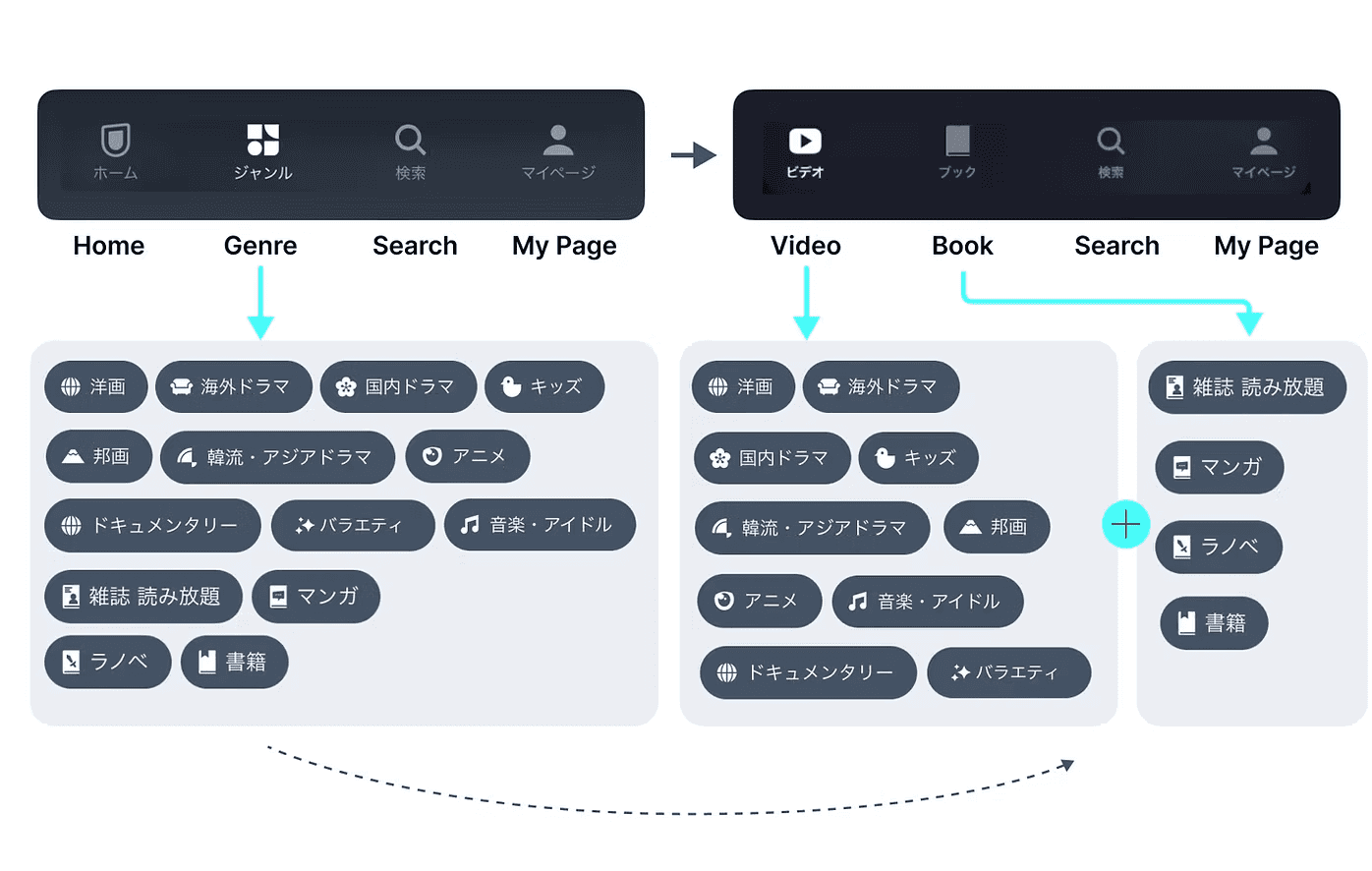 Six months after the midway release, U-NEXT experienced significant growth in its book business. As a result, Books was promoted to a dedicated top-level tab, separate from Video.