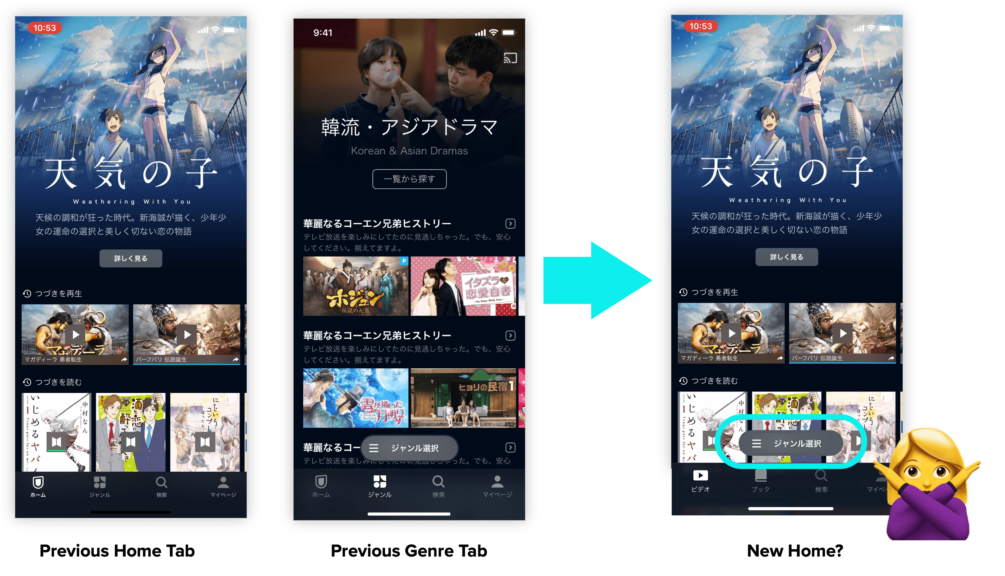 Redesigned the mobile genre-browsing experience for U-NEXT, a subscription-based VOD platform, to improve content discovery and engagement. Through multiple iterations and user testing, the project evolved from a navigation-focused redesign into a behavior-driven solution aligned with business growth. The final design increased genre page visits by 10–15% within two weeks of release.