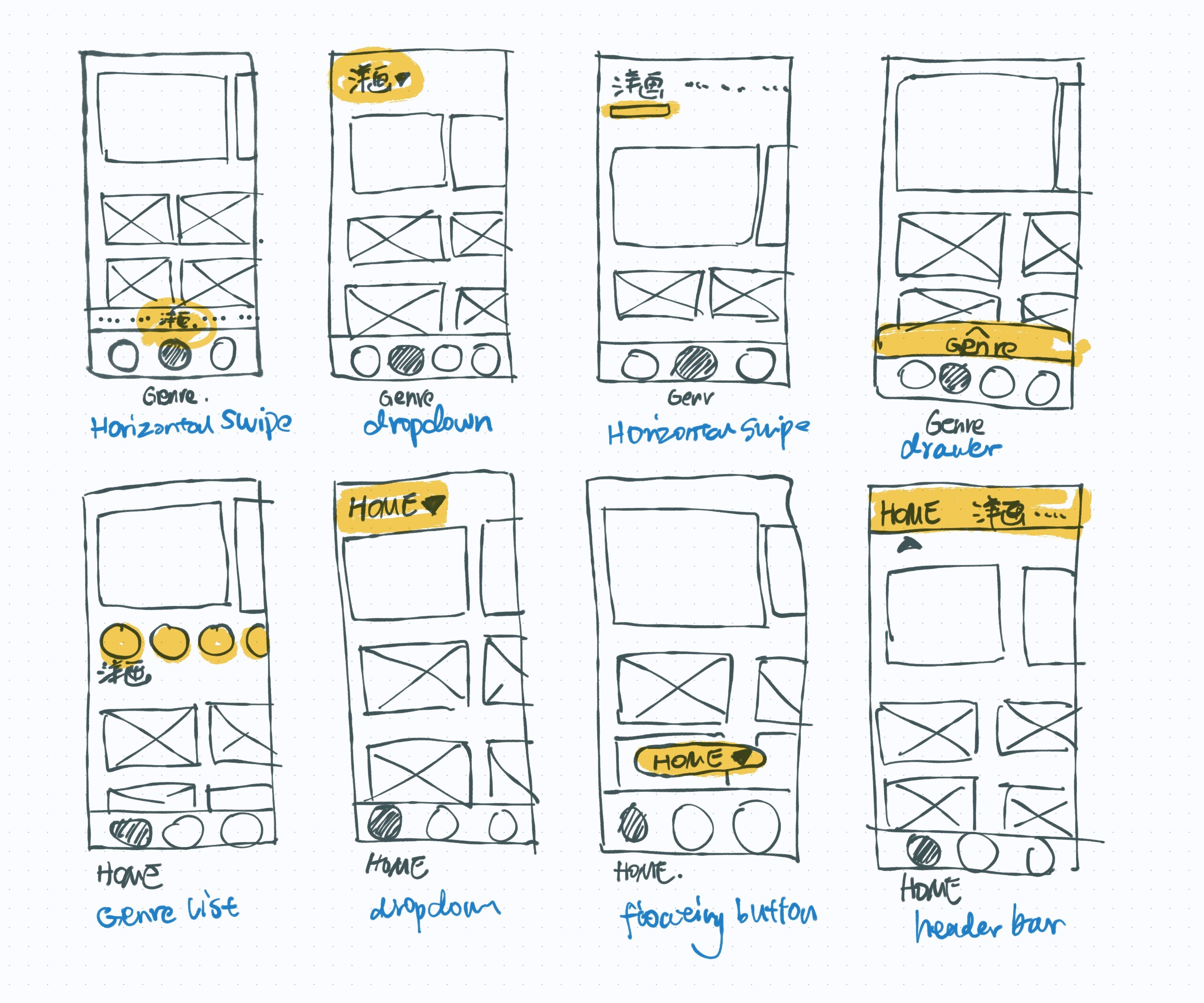 As an initial direction, we explored moving genre navigation closer to the lower and central areas of the screen, where users naturally interact more often.