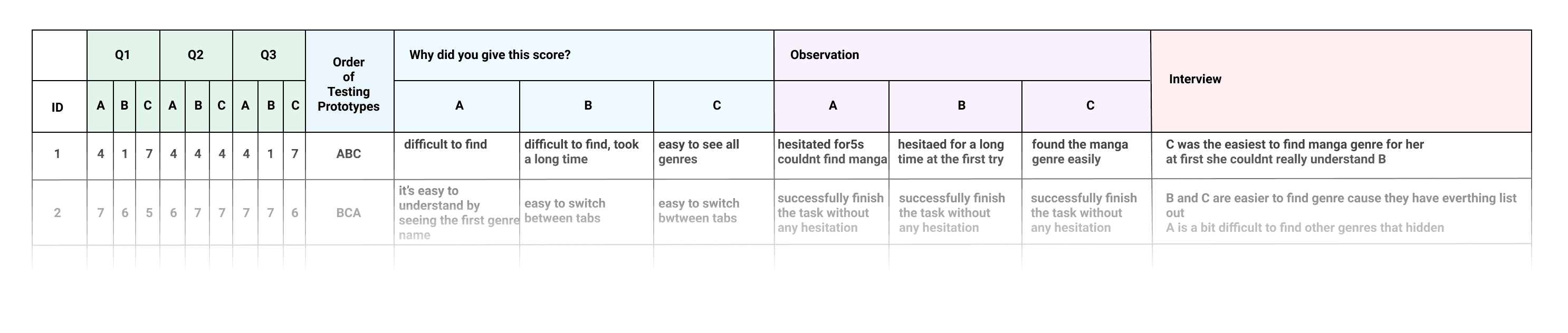 To evaluate which genre-browsing pattern best supports discoverability and switching efficiency on mobile, we conducted guerrilla user testing combining task-based usability tests, standardized usability surveys, and qualitative interviews.