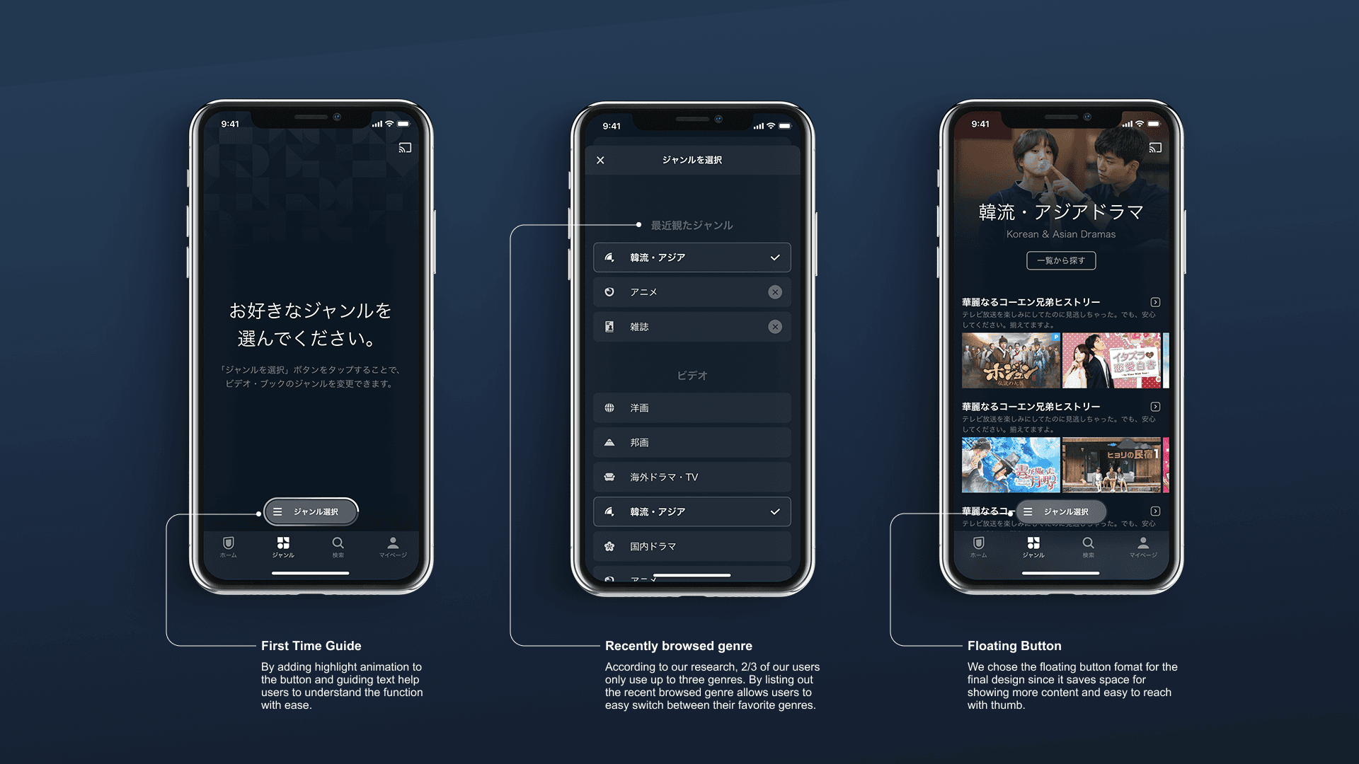 This project focused on redesigning the genre-browsing experience for U-NEXT, aiming to help users reach their favorite content more easily on mobile.