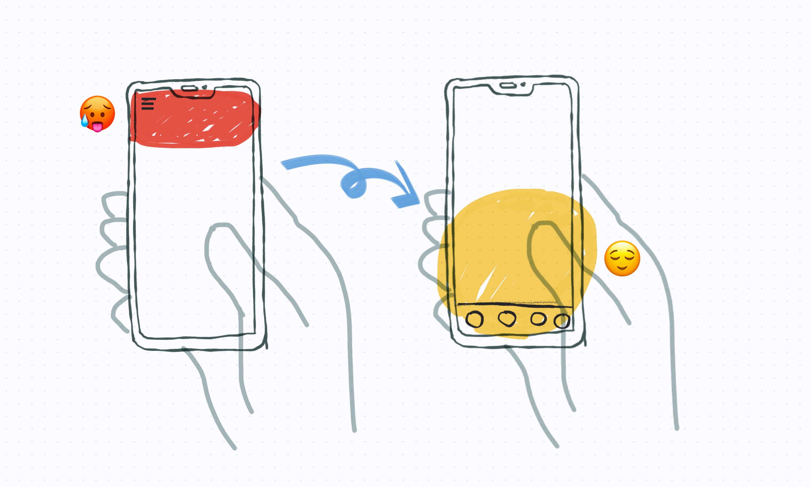 We first considered introducing a bottom tab–based approach, which is widely adopted across mobile apps. This familiarity would help reduce learning costs and ease user adoption.